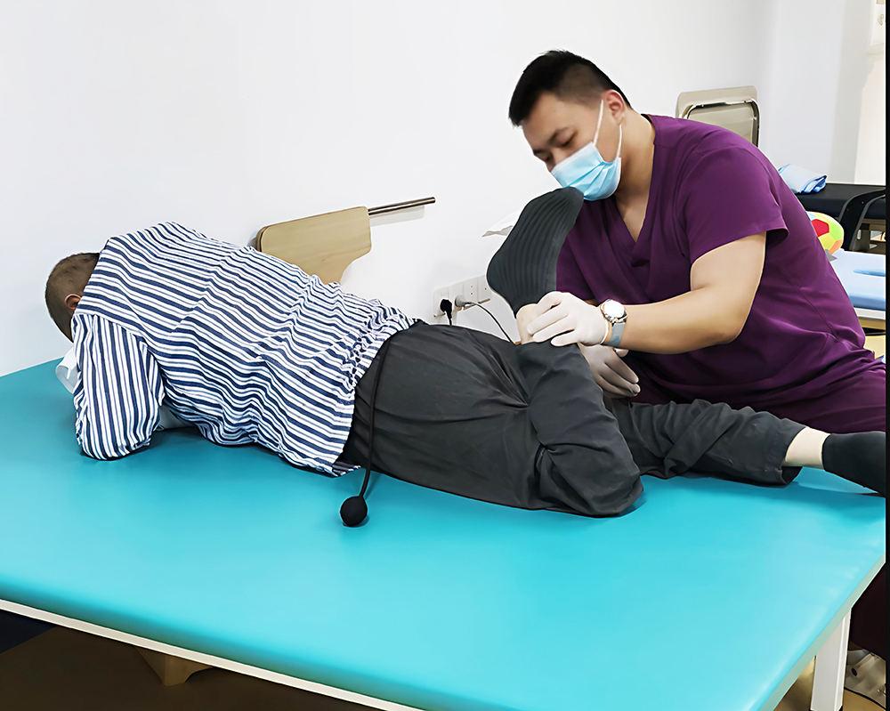 来到我院康复中心后,王永恒康复师负责郭先生的康复训练及相关治疗工作。从接手患者的第一天起,王永恒康复师便用行动诠释着    “手到康复显精湛技艺”的重量。他深知截瘫患者的康复之路漫长且艰难,每一丝进步都离不开精准的评估与科学的方案。他反复研究患者病情,结合临床经验制定个性化康复计划:小到每一个关节的活动角度,大到肌力训练的强度梯度,都经过细致考量,力求做到“一丝不苟”;训练中,他手把手指导动作、纠正姿势,哪怕是细微的发力偏差,也会耐心调整,用专业让“0级肌力”的僵局逐步破冰。