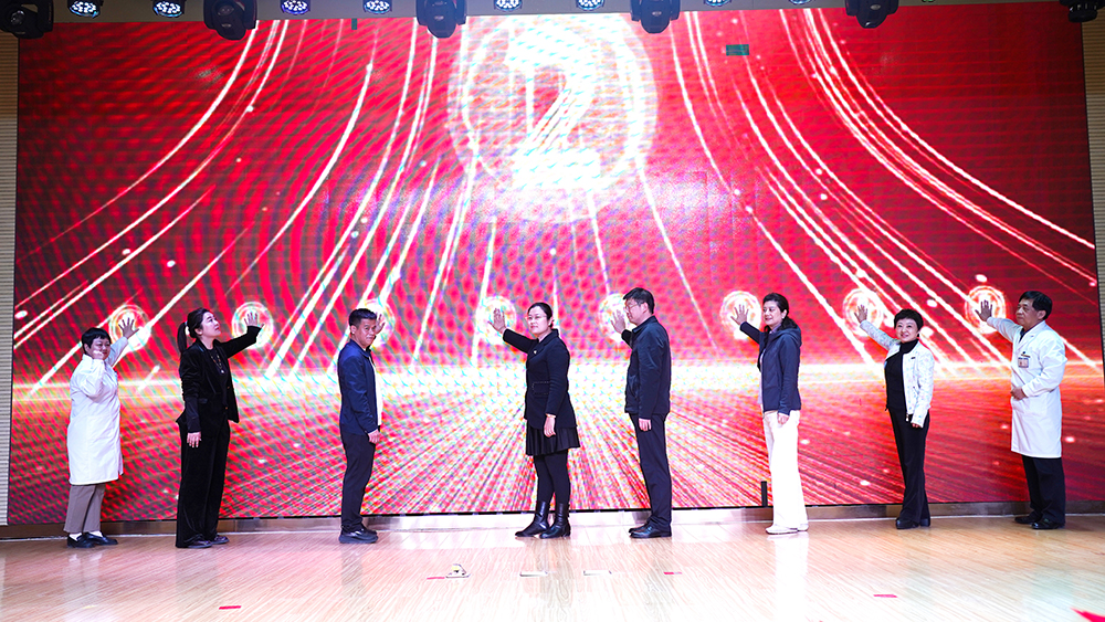 启动仪式上,嘉宾宋高芬老师、景科长、北京医大杨书记、彭院、崔院、宋总、张主任、李主任一起上台,共同按下启动键,正式开启2026年“内涵建设年”。简洁而庄重的启动仪式,象征着全院上下凝心聚力、携手奋进的新起点。