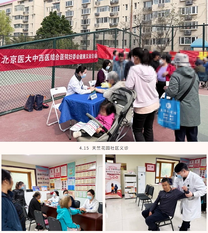 义诊活动中,北京医大中西医结合医院中医科张美丽主任、李鑫然医生、赵艳娇医生,消化内科张文书医生,康复科赵兴华医生等医护团队一起耐心细致地为前来问诊的群众解答疑问,免费为居民提供中医脉诊、消化内科、口腔科、康复科健康指导、血糖、血压检测等,还对春季常见病、多发病等疾病的预防和保健进行了科普,并根据问诊居民的实际情况提供合理化的建议和健康指导。